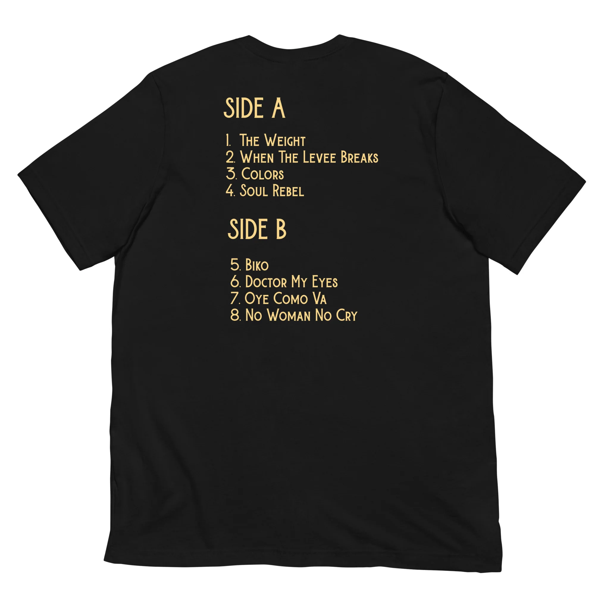 This T-shirt features the album artwork on the front and the track listing on the back.