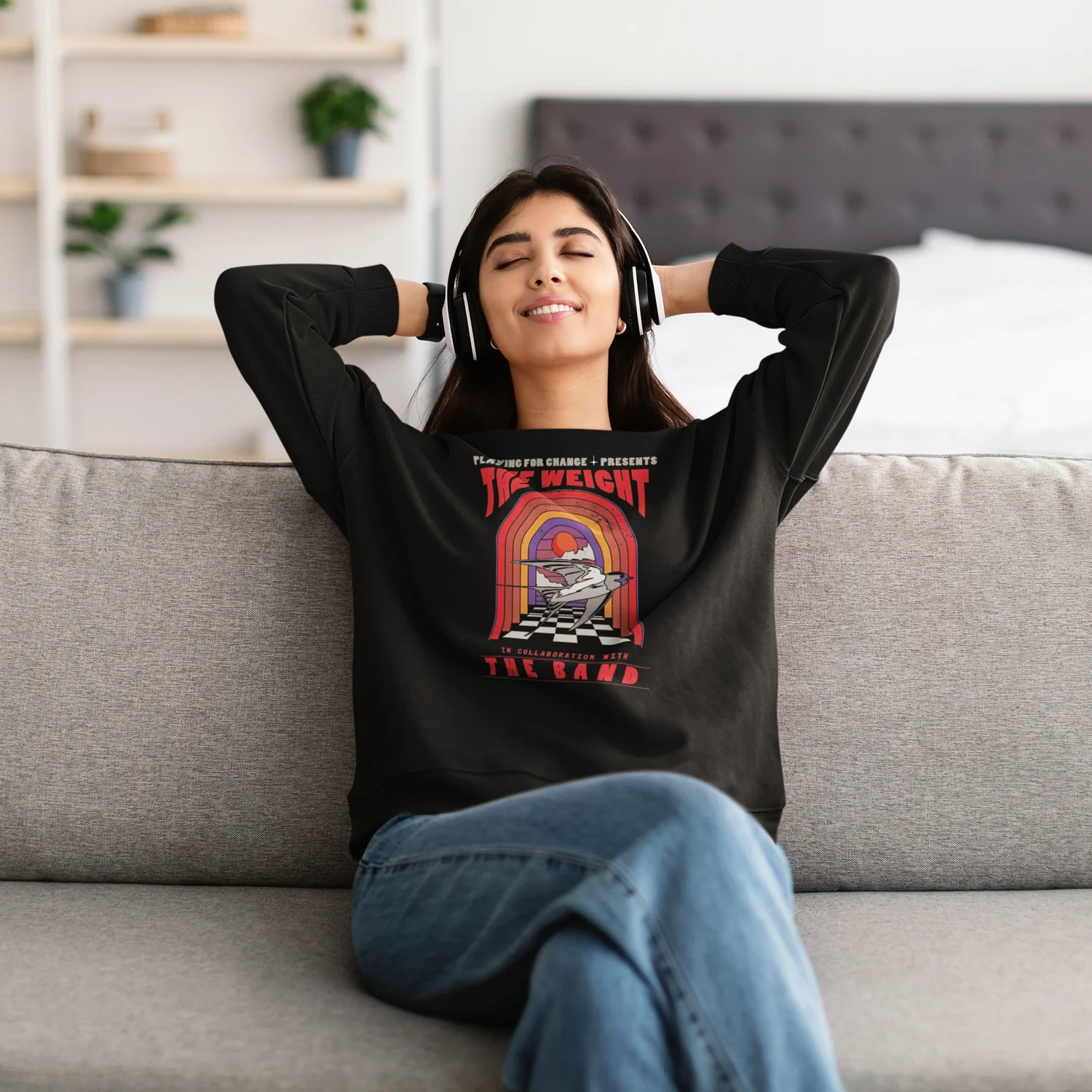 Millions of people around the world have been singing along to "The Weight" since The Band first started performing the internationally known classic 55 years ago! We proudly offer you this exclusive design to celebrate the collaboration that brought together musicians from 5 continents on the song's 50th Anniversary. Featuring original art and a list of each contributor and their homeland on the back.